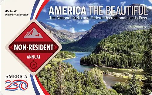 Mais vous pouvez également opter pour l’achat du nouveau pass America The Beautiful pour les non résidents. Ce pass, qui coûte 250$, donne un accès illimité à tous les passagers d’une voiture (dont le détenteur du pass), dans tous les parcs nationaux américains pendant un an (à compter du mois d’achat, pour 12 mois supplémentaires). Le Pass permet également de ne pas payer la surcharge de 100$ par personne de plus de 16 ans dans les 11 parcs concernés, avec une limite de 4 personnes (de 16 ans ou plus) par pass.