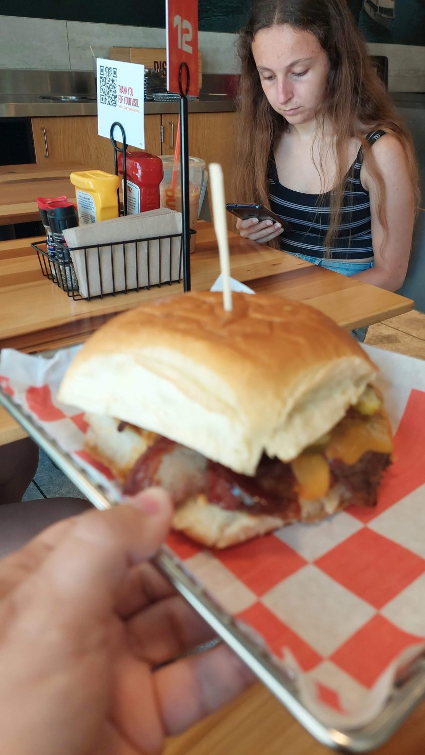 Les 6ème et 5ème places du classement sont occupées ex-æquo par Freddy’s et Culver’s, deux chaînes de better burger très similaires et difficiles à départager (Sandrine donnerait la primeur au Freddy’s mais Silvère maintient que Culver’s est un peu supérieur). Freddy’s mise sur des steakburgers de style smash (avec notamment une version épicée au jalapeño) et des frites allumettes assaisonnées d’épices signature, le tout accompagné d’une frozen custard (glace) dense et abordable, proposée uniquement en vanille ou chocolat mais avec une multitude de toppings. De son côté, Culver’s, originaire du Wisconsin, se démarque par ses célèbres « Butterburgers » (smash burgers cuits au beurre) et ses frites ondulées (crinkle cut), mais surtout par son offre de frozen custard qui inclut, en plus des bases classiques, un « parfum du jour » rotatif qui permet de varier les plaisirs. En tout cas, leurs burgers sont solides et à tester sans hésiter ni modération.