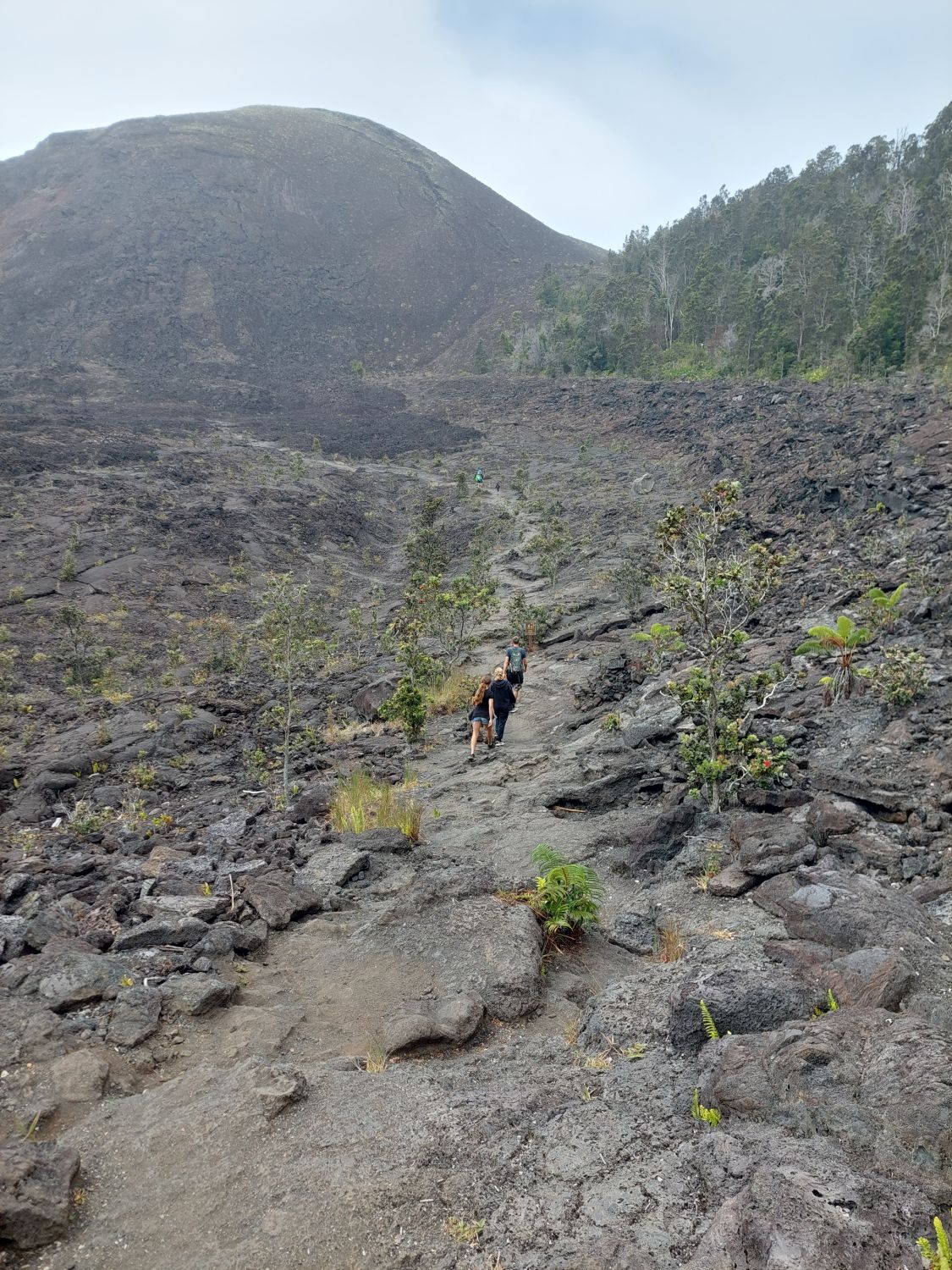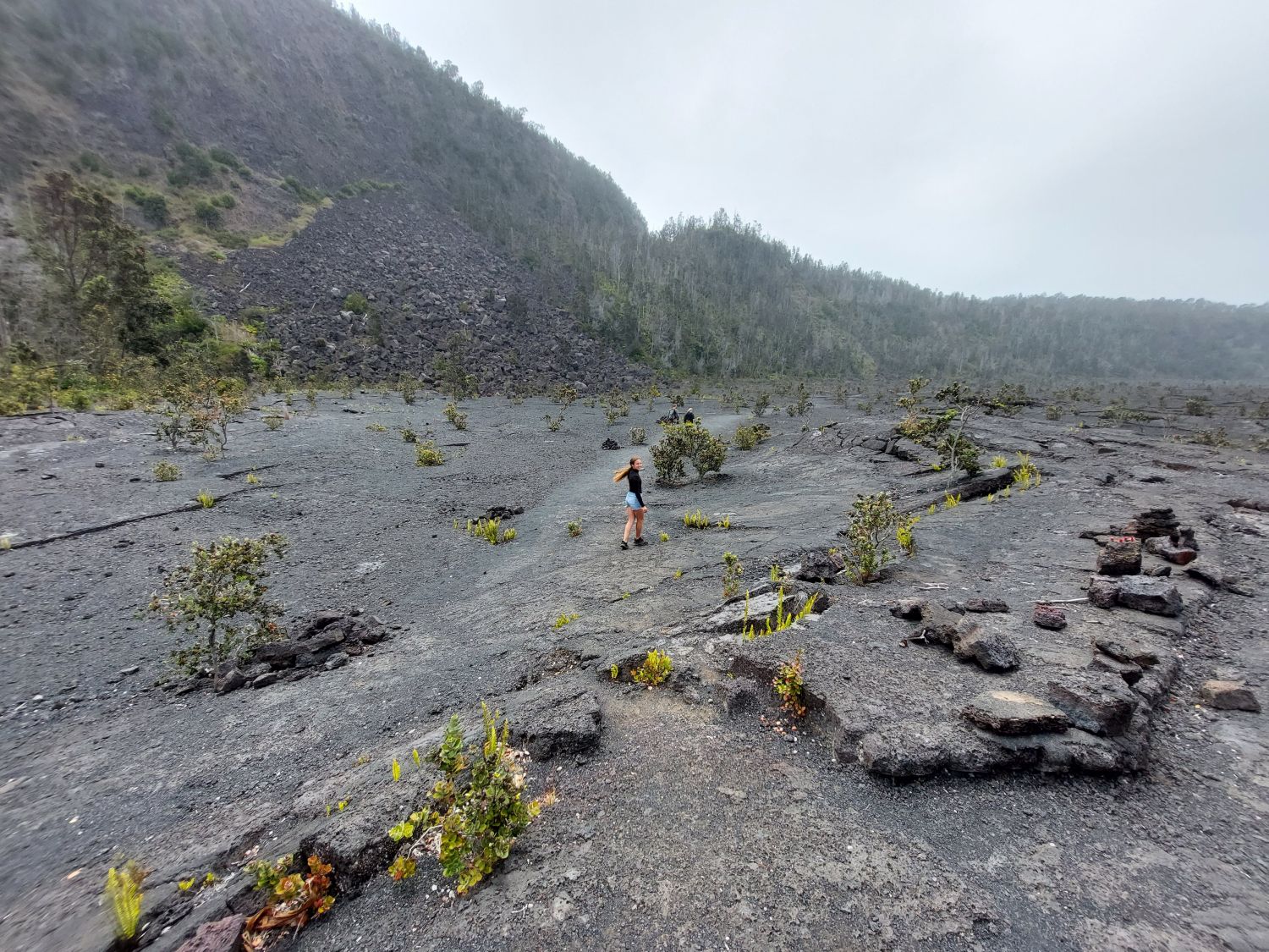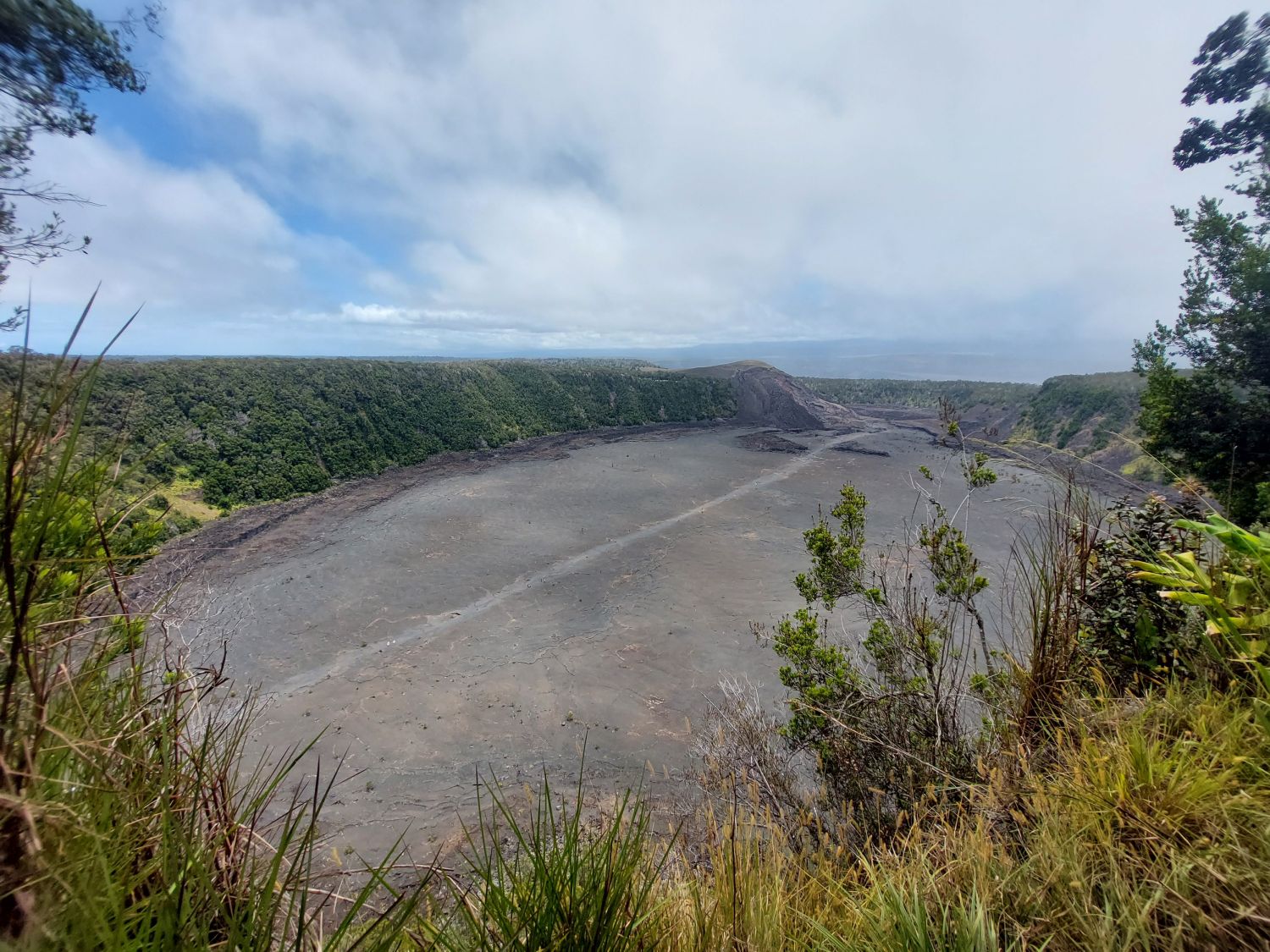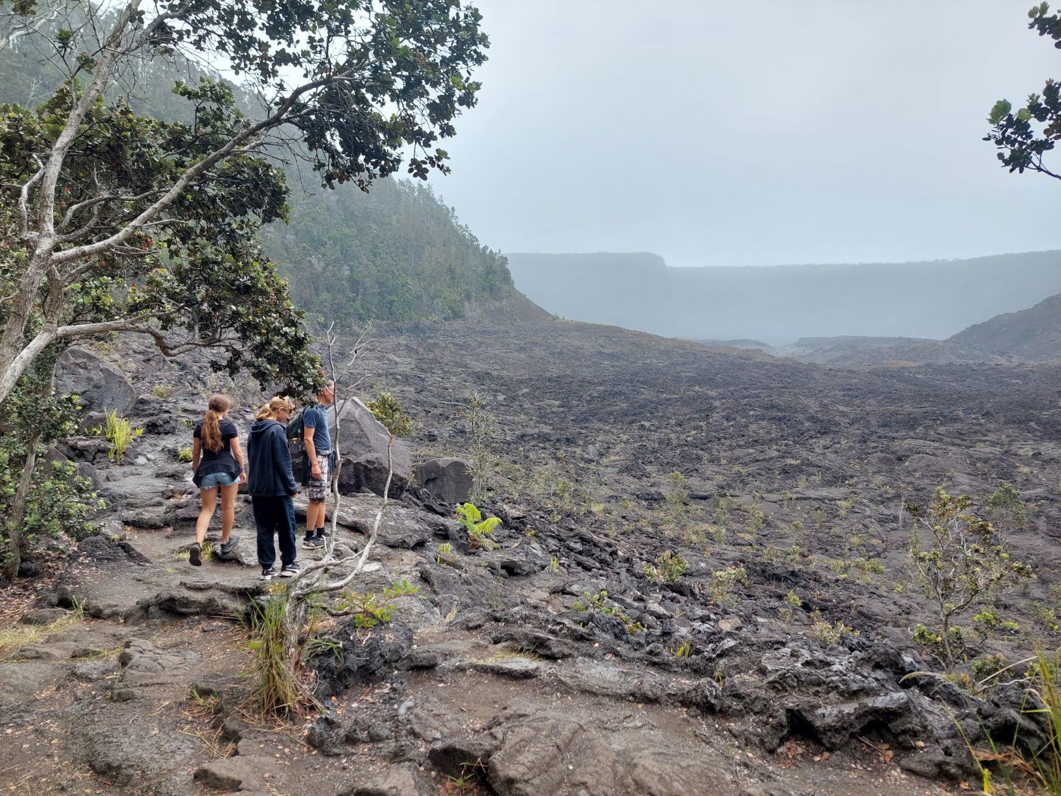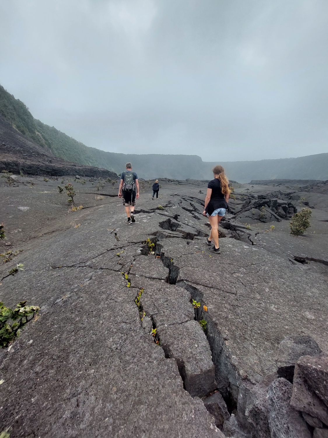 La star des lieux est incontestablement le Kīlauea, le plus actif des cinq volcans à l’origine de l’île. Géologiquement jeune, ce volcan sous-marin âgé de 200 000 à 300 000 ans n’a émergé des flots qu’il y a environ 100 000 ans. Son activité récente est particulièrement intense, notamment lors de l’éruption majeure de 2018. À cette occasion, des effusions massives sur les flancs du volcan ont vidé la chambre magmatique, provoquant l’effondrement brutal du cratère principal. Un gouffre de 500 mètres de profondeur (dépassant la hauteur de la Tour Eiffel) s’est alors formé. Depuis, ce cratère se remplit progressivement de lave au fil des éruptions et le niveau du sol est déjà remonté de 450 mètres, ne laissant plus qu’une cinquantaine de mètres de vide au fond de la caldeira. Un sentier permet de descendre dans cette caldeira, tout en gardant une bonne distance de sécurité avec le lac de lave toujours actif en son centre.