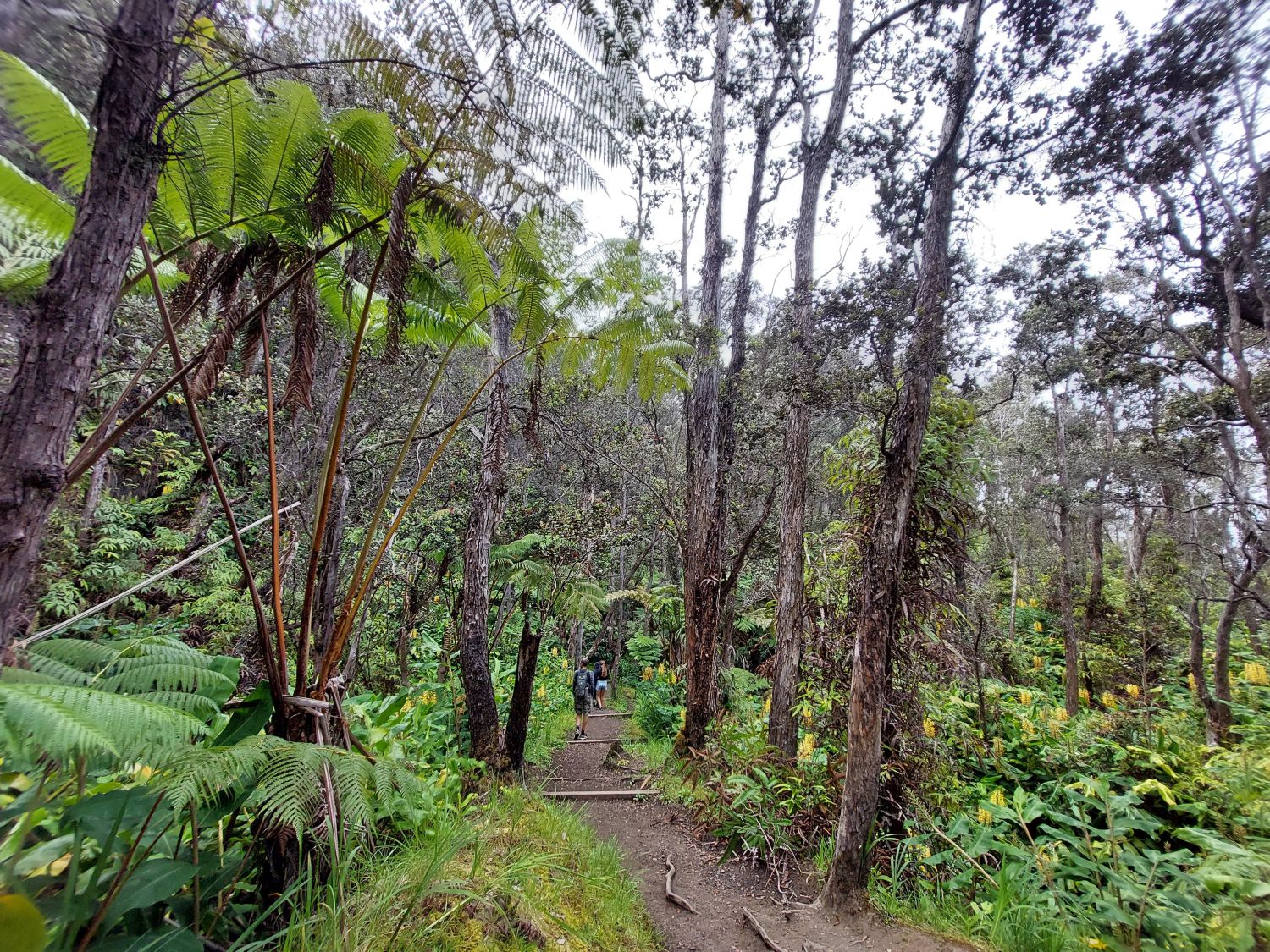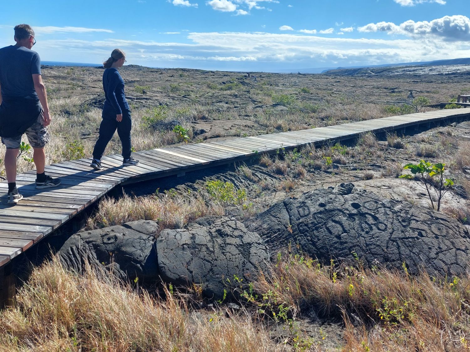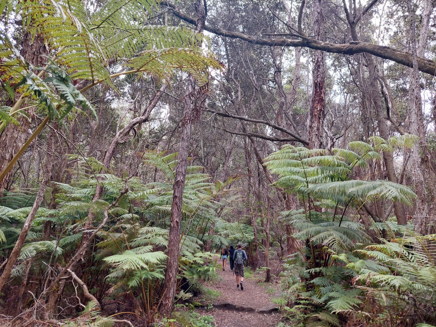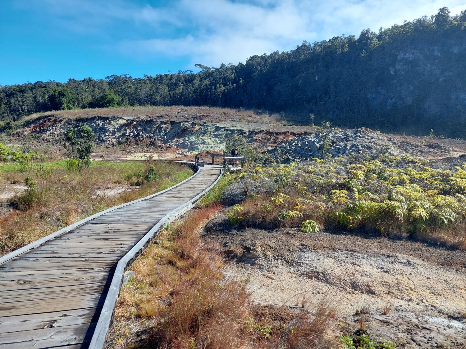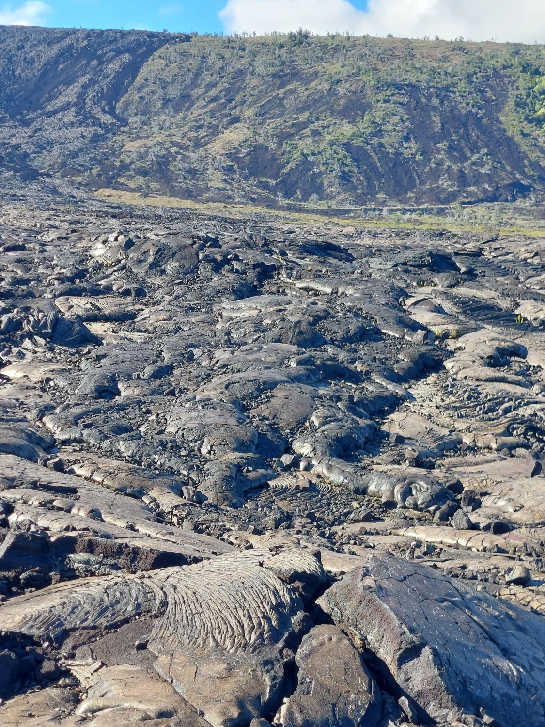 La star des lieux est incontestablement le Kīlauea, le plus actif des cinq volcans à l’origine de l’île. Géologiquement jeune, ce volcan sous-marin âgé de 200 000 à 300 000 ans n’a émergé des flots qu’il y a environ 100 000 ans. Son activité récente est particulièrement intense, notamment lors de l’éruption majeure de 2018. À cette occasion, des effusions massives sur les flancs du volcan ont vidé la chambre magmatique, provoquant l’effondrement brutal du cratère principal. Un gouffre de 500 mètres de profondeur (dépassant la hauteur de la Tour Eiffel) s’est alors formé. Depuis, ce cratère se remplit progressivement de lave au fil des éruptions et le niveau du sol est déjà remonté de 450 mètres, ne laissant plus qu’une cinquantaine de mètres de vide au fond de la caldeira. Un sentier permet de descendre dans cette caldeira, tout en gardant une bonne distance de sécurité avec le lac de lave toujours actif en son centre.