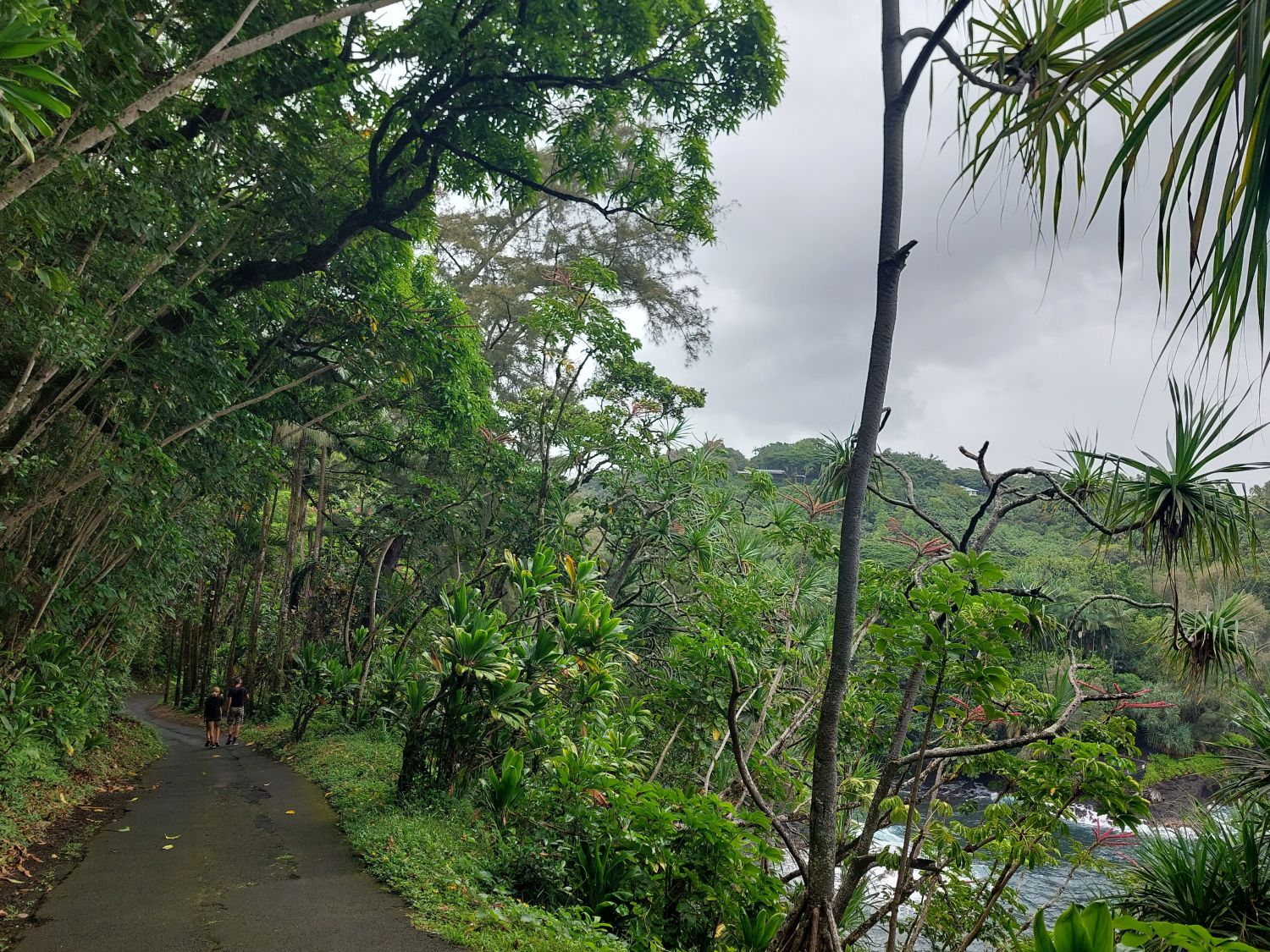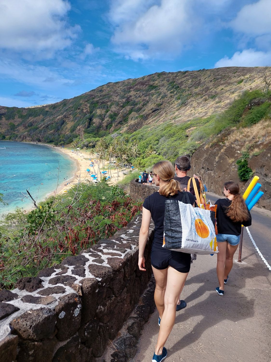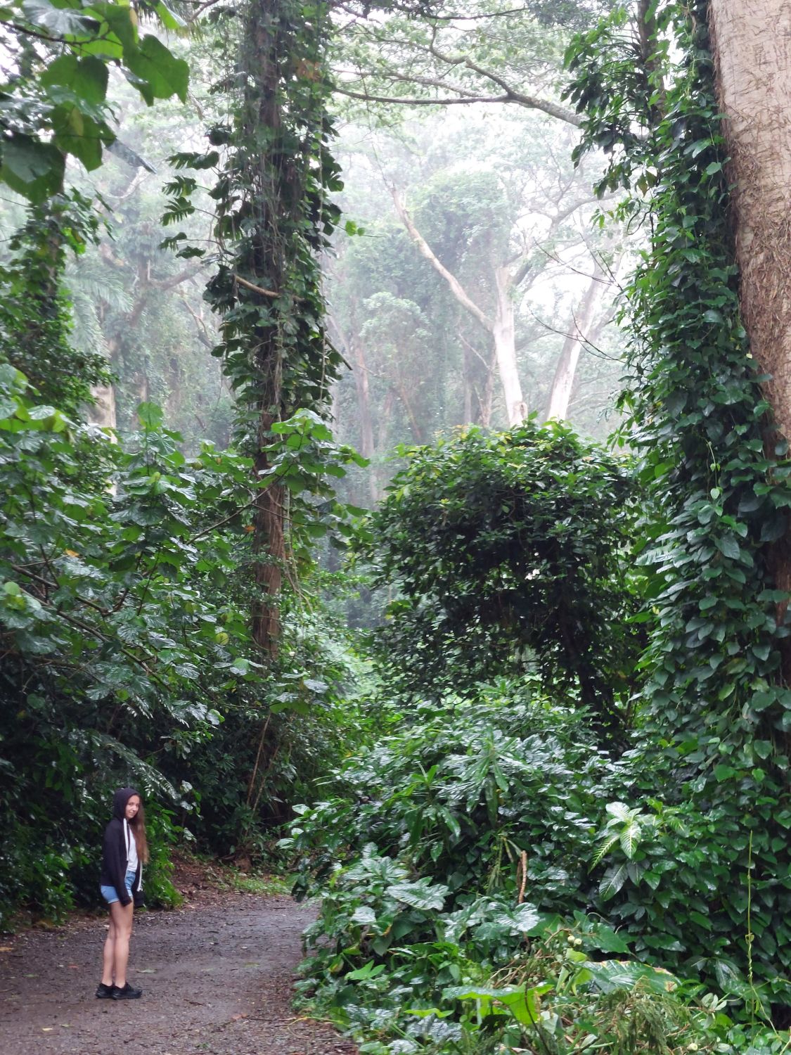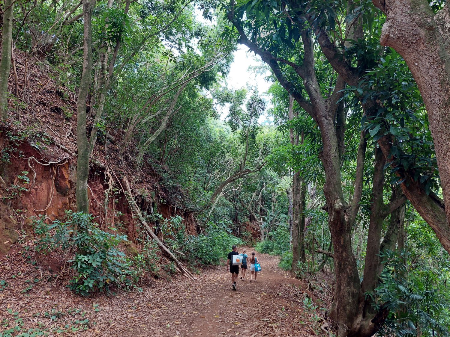 L’itinéraire se décompose en deux parties distinctes. La première section longe le littoral à flanc de falaise, avec des vues spectaculaires sur la côte en contrebas. Puis le sentier redescend vers une plage paradisiaque digne d’un décor de cinéma. A partir de là, après une pause bien méritée, on peut s’attaquer à la seconde section de la randonnée : le sentier s’enfonce alors dans les terres, remontant une vallée luxuriante et traversant des forêts de bambous pour aboutir à une cascade vertigineuse où l’on peut se baigner. C’est une randonnée exigeante, avec du dénivelé, mais qui récompense ceux qui l’entreprennent tout du long de leur effort. Pour tout dire, c’est l’une des plus belles randonnées qu’il nous ait été donné de faire, peut être même la plus belle. Et nous parcourons les plus beaux parcs de l’ouest américain depuis plus de trente ans …