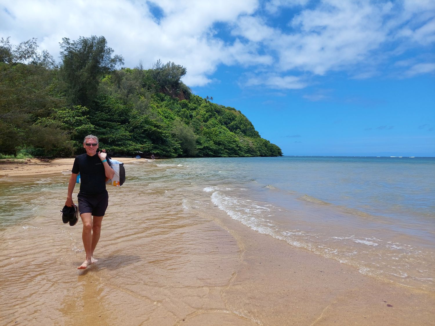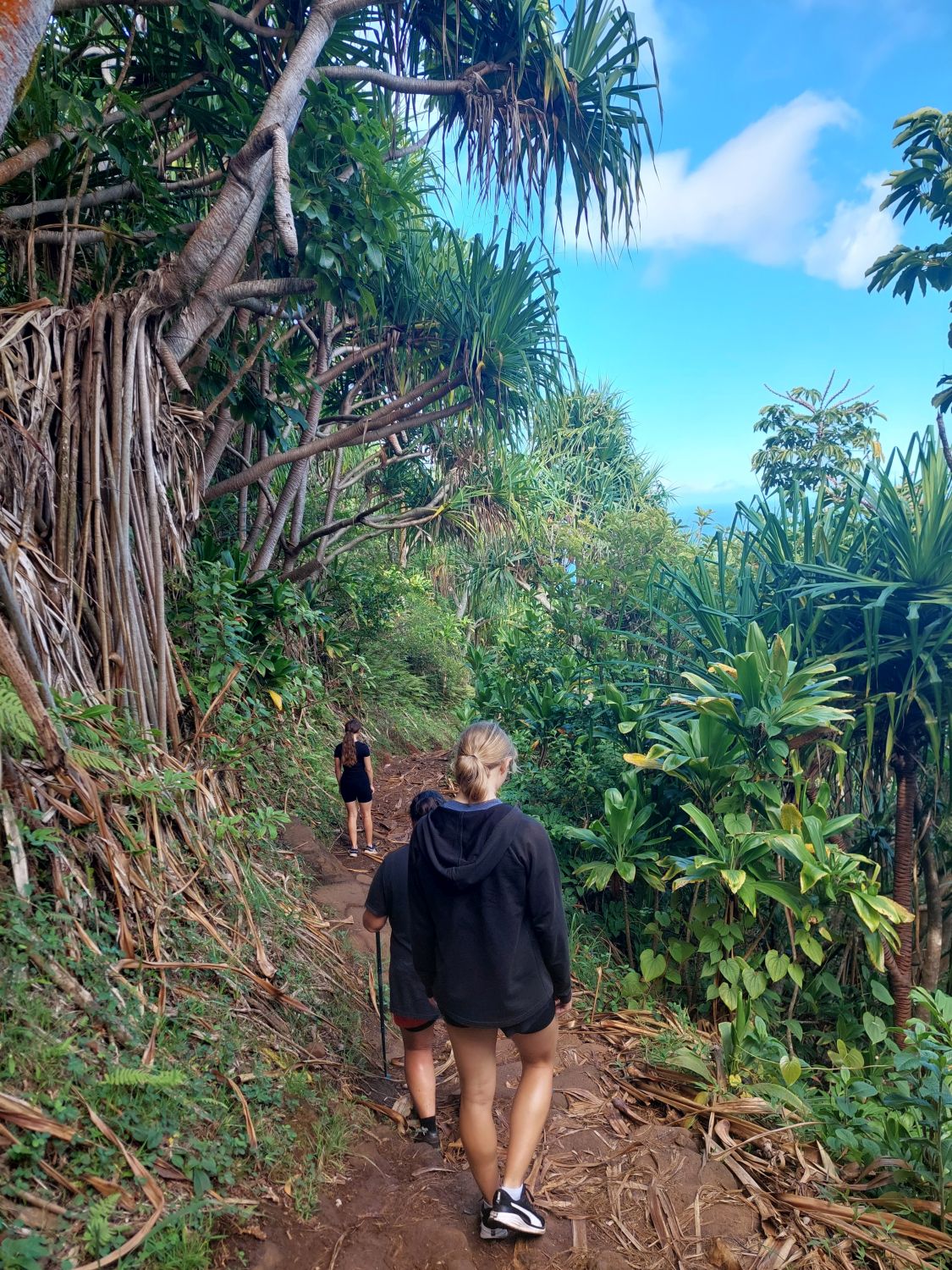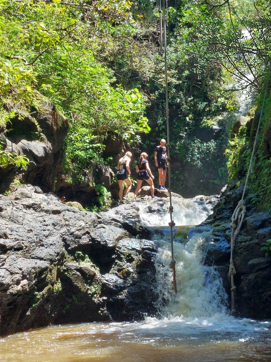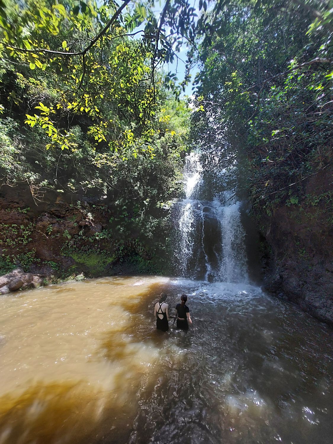 L’itinéraire se décompose en deux parties distinctes. La première section longe le littoral à flanc de falaise, avec des vues spectaculaires sur la côte en contrebas. Puis le sentier redescend vers une plage paradisiaque digne d’un décor de cinéma. A partir de là, après une pause bien méritée, on peut s’attaquer à la seconde section de la randonnée : le sentier s’enfonce alors dans les terres, remontant une vallée luxuriante et traversant des forêts de bambous pour aboutir à une cascade vertigineuse où l’on peut se baigner. C’est une randonnée exigeante, avec du dénivelé, mais qui récompense ceux qui l’entreprennent tout du long de leur effort. Pour tout dire, c’est l’une des plus belles randonnées qu’il nous ait été donné de faire, peut être même la plus belle. Et nous parcourons les plus beaux parcs de l’ouest américain depuis plus de trente ans …