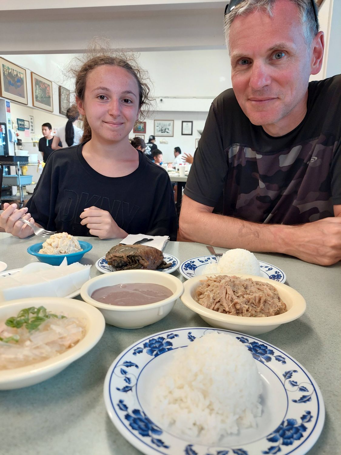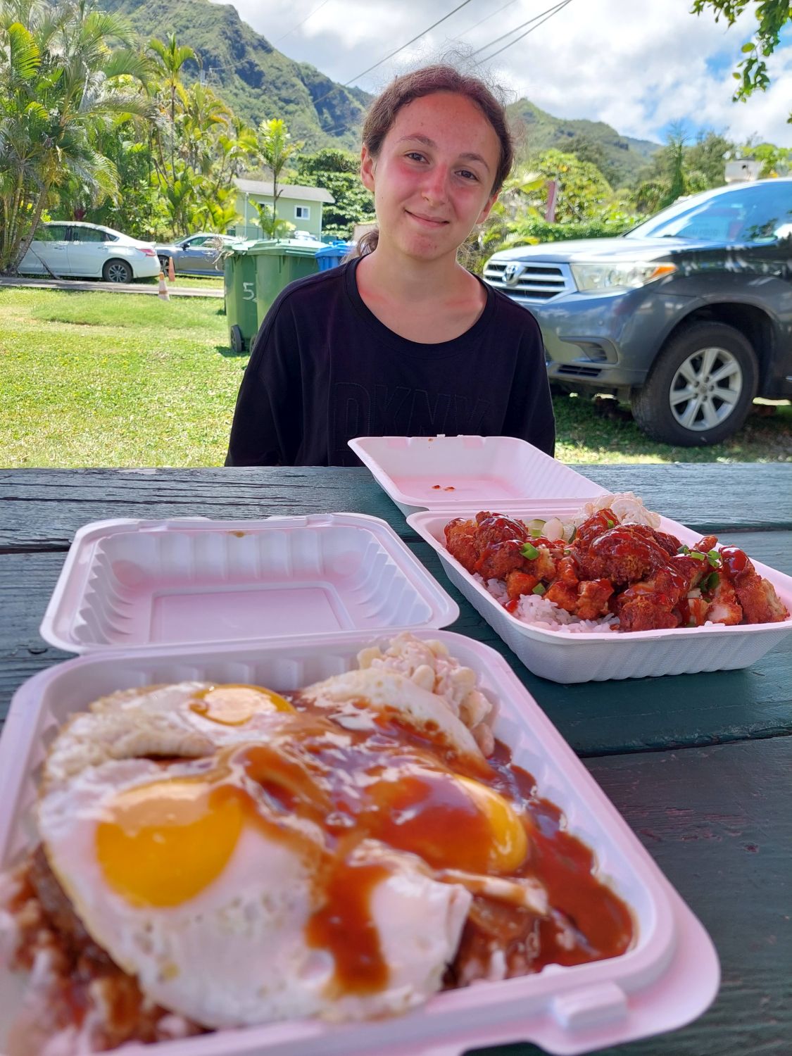 Pour nous, ces lieux représentent la solution la plus économique et la plus authentique pour se restaurer : le secret réside dans leurs Big Plates, des versions XXL de leurs plats emblématiques à des prix défiant toute concurrence. Une seule portion, vendue environ 15 ou 16 dollars, s’avère si copieuse qu’elle suffit largement pour deux, voire trois personnes. En voyageant à quatre, commander deux de ces plate-lunch permet de nourrir toute la famille pour une trentaine de dollars, et laisse même souvent des restes pour le dîner. Pour toutes ces raisons, ces Drive-Ins sont devenus notre cantine principale tout au long de notre séjour.
