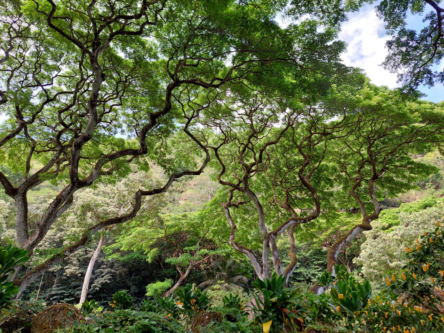 Cette végétation hors du commun se distingue par ses couleurs vibrantes et ses fleurs omniprésentes, mais aussi par son caractère étonnamment accessible. Contrairement à d’autres milieux tropicaux, la jungle hawaïenne se révèle accueillante, ce qui permet de s’y aventurer sans difficulté majeure, le long des rivières ou jusqu’à des cascades incroyables où l’on peut parfois se baigner.