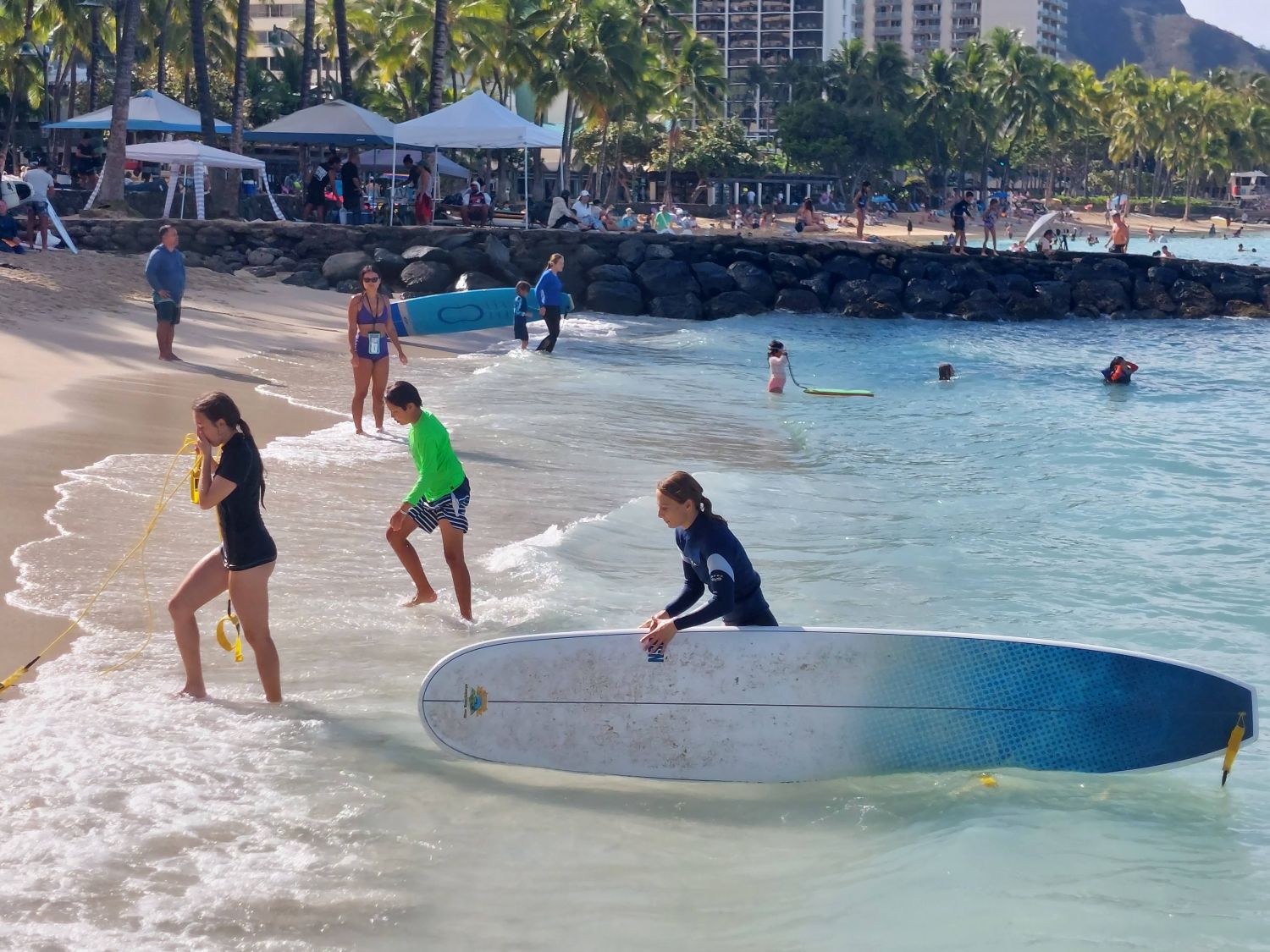 La célèbre plage de Waikiki s’impose également comme le spot idéal pour s’initier aux joies du surf. Grâce à des vagues régulières et parfaitement dimensionnées pour les débutants, les conditions d’apprentissage y sont optimales. Pour limiter les coûts, qui peuvent rapidement s’envoler, vous pouvez passer par des offres Groupon afin de dénicher des cours d’initiation à tarif réduit. L’expérience se révèle véritablement magique : la qualité de la houle est telle qu’une seule heure suffit pour parvenir à prendre ses premières vagues et ressentir la satisfaction immédiate de “savoir surfer”. Pour ceux qui disposent d’un peu de temps, il est vivement conseillé de programmer cette initiation en début de séjour. Cela permet d’acquérir les bases nécessaires pour ensuite louer simplement une planche et continuer à progresser en autonomie durant le reste des vacances.