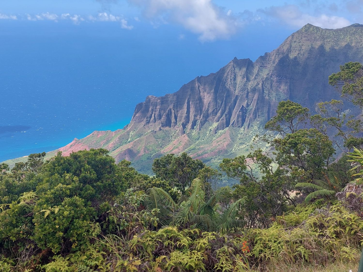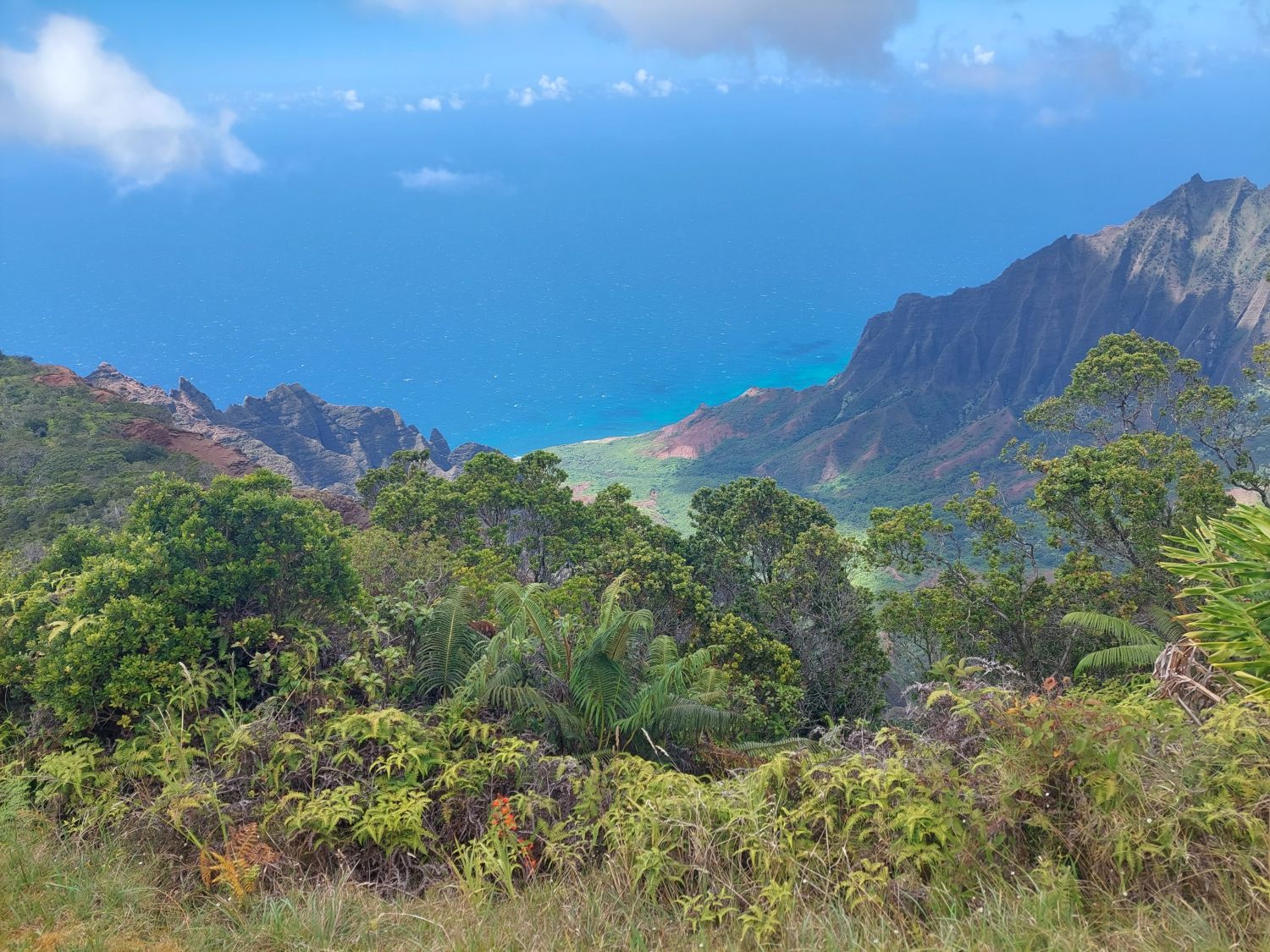 Notre exploration se termine sur Kauai, la plus petite des trois îles visitées, mais sans doute la plus éblouissante. Souvent qualifiée de « perle » de l’archipel, elle offre des possibilités de randonnées absolument sublimes. La diversité des paysages est frappante, particulièrement sur la côte ouest où se déploie la majestueuse Na Pali Coast.